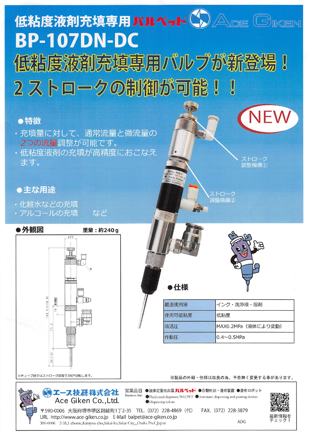 各営業担当者へ直接ご連絡頂くか、下記までご連絡お願いします。 電話番号 072-228-4869 FAX番号 072-228-3879 E-mail balpet@ace-giken.co.jp