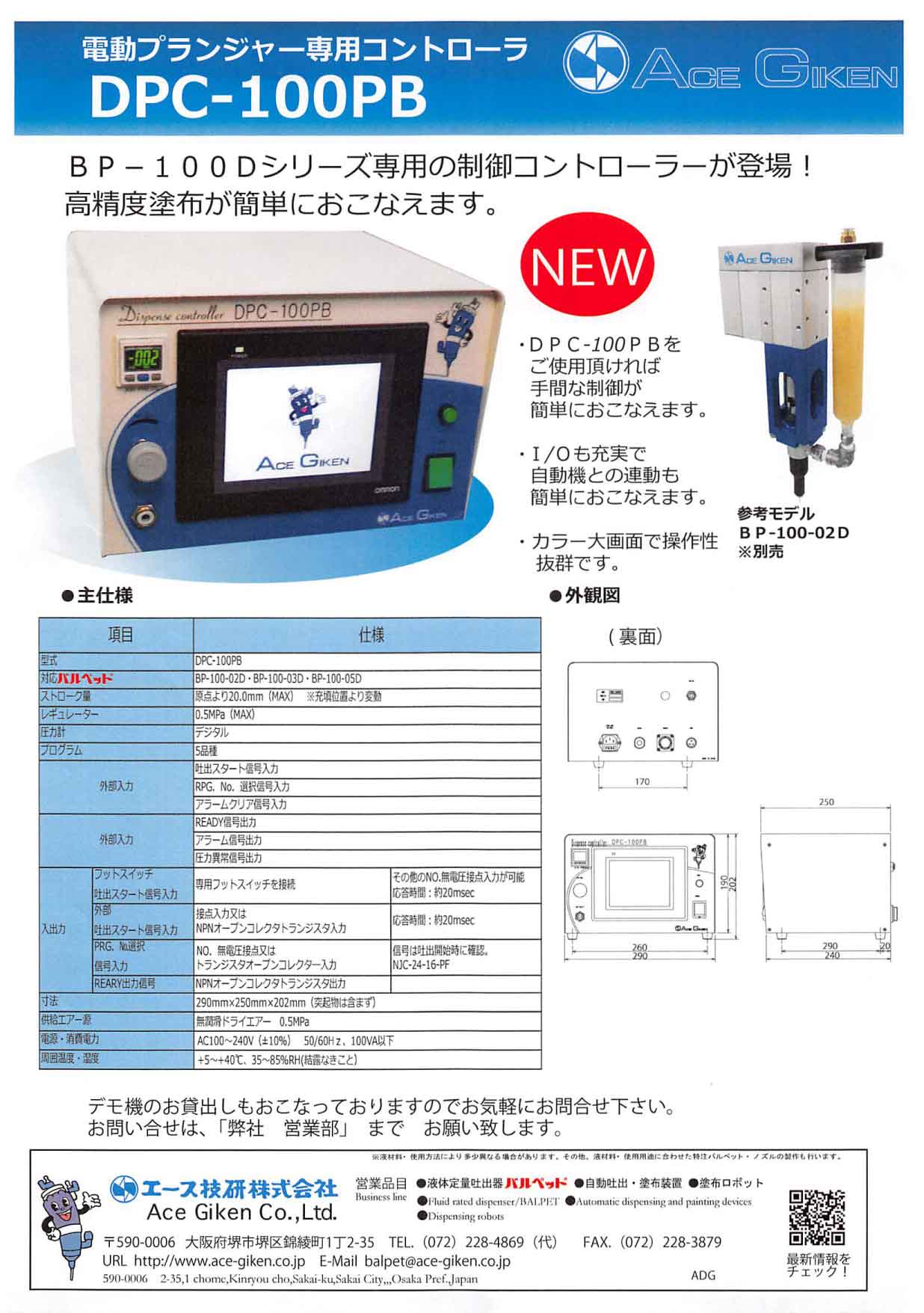 平素は格別のご高配を賜り、厚くお礼申し上げます。 さて、この度 新商品情報の更新をおこないましたのでお知らせ致します。 以下の製品ページを追加しておりますので、是非ご覧ください。 【コントローラー】 コントローラー DPC-100PB ※電動プランジャーのバルペットBP-100-02D・BP-100-03D・BP-100-05D専用のコントローラーです。 |